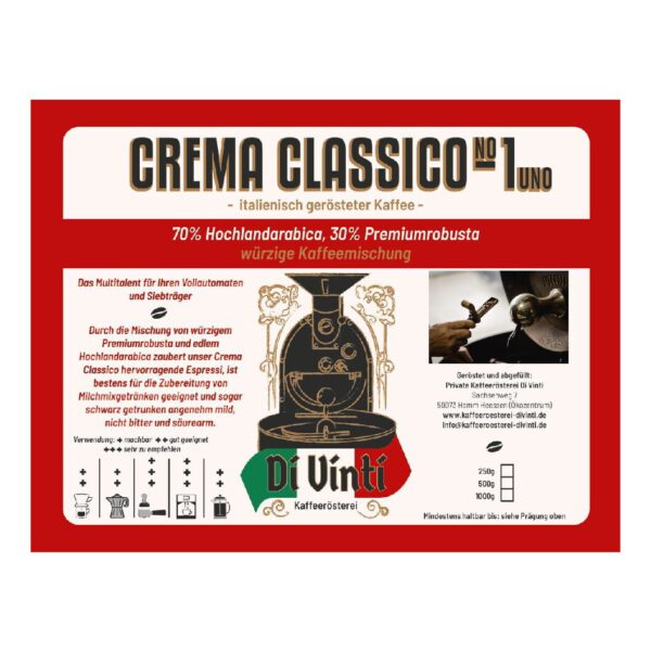 70 % Hochlandarabica (SHG), 30 % Premiumrobusta Durch die Mischung von Hochlandarabicas und edlen Robustabohnen zaubert unser Crema Classico einen