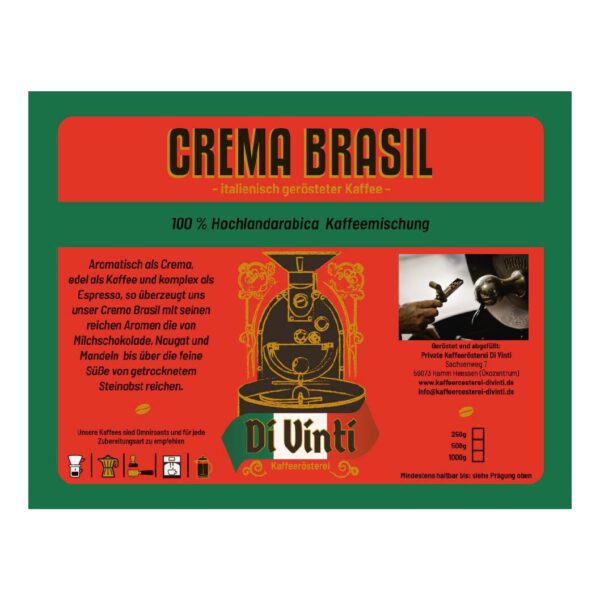 Crema Brasil 100 % Hochlandarabica (SHG) blend Aromatisch als Crema, edel als Kaffee und komplex als Espresso, so überzeugt uns