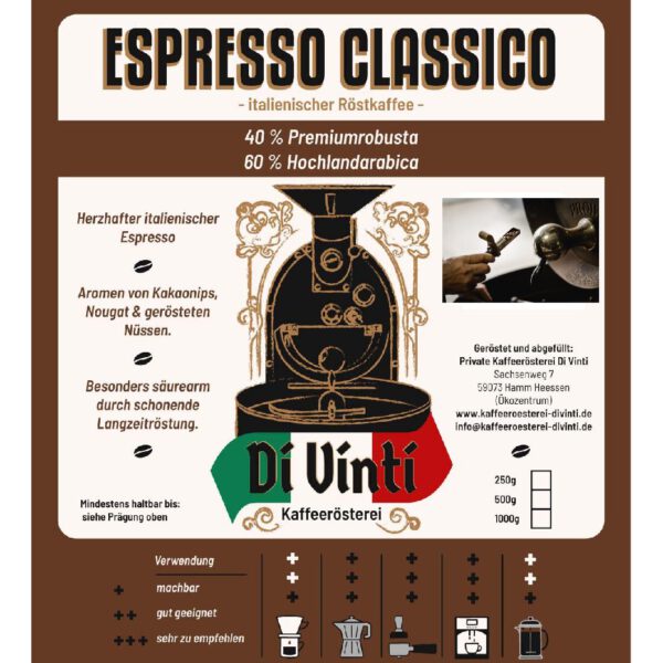 70 % Hochlandarabica (SHG),  30 % Premiumrobusta Durch die Mischung von Hochlandarabicas und edlen Robustabohnen zaubert unser Crema Classico einen